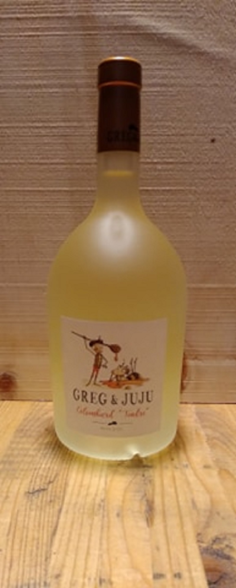 Greg et Juju, vin doux mais pas trop, au nez on a des fruits jaunes et des agrumes, et en bouche on retrouve la tonicité apporter par le colombard. Idéal à l'apéritif.
